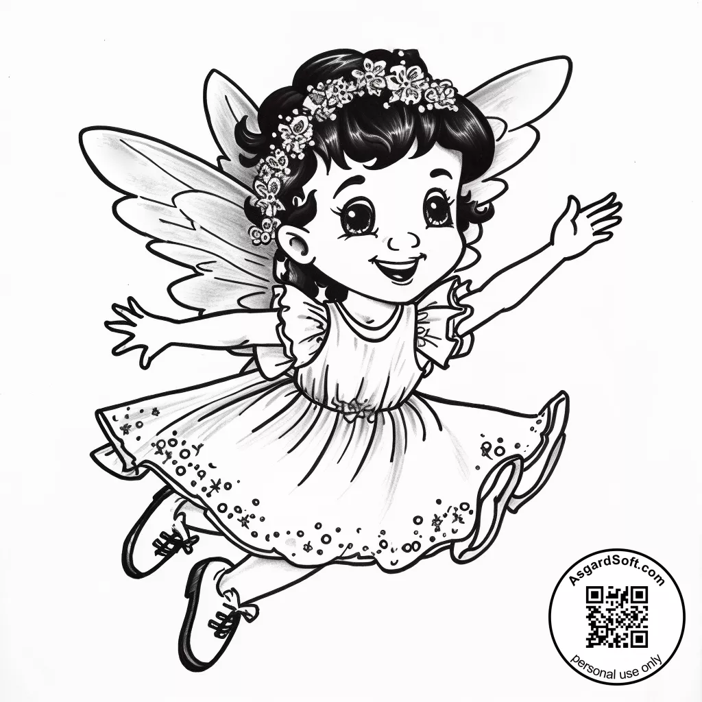 Flying cute little happy fairy.